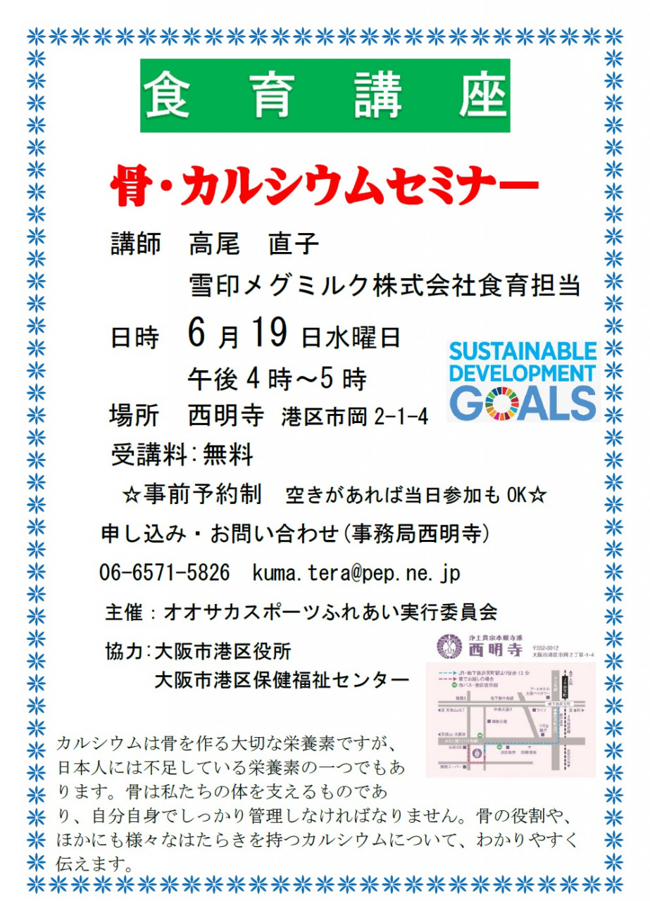 骨、カルシウム セミナー 2019/05/12 食育講座 骨・カルシウムセミナー 6月19日午後4時~5時 食育講座 骨・カルシウムセミナー開催いたします。 骨を作るために大切でありながら不足しがちな栄養素カルシウムについて楽しくわかりやすくお伝えします。 セミナー