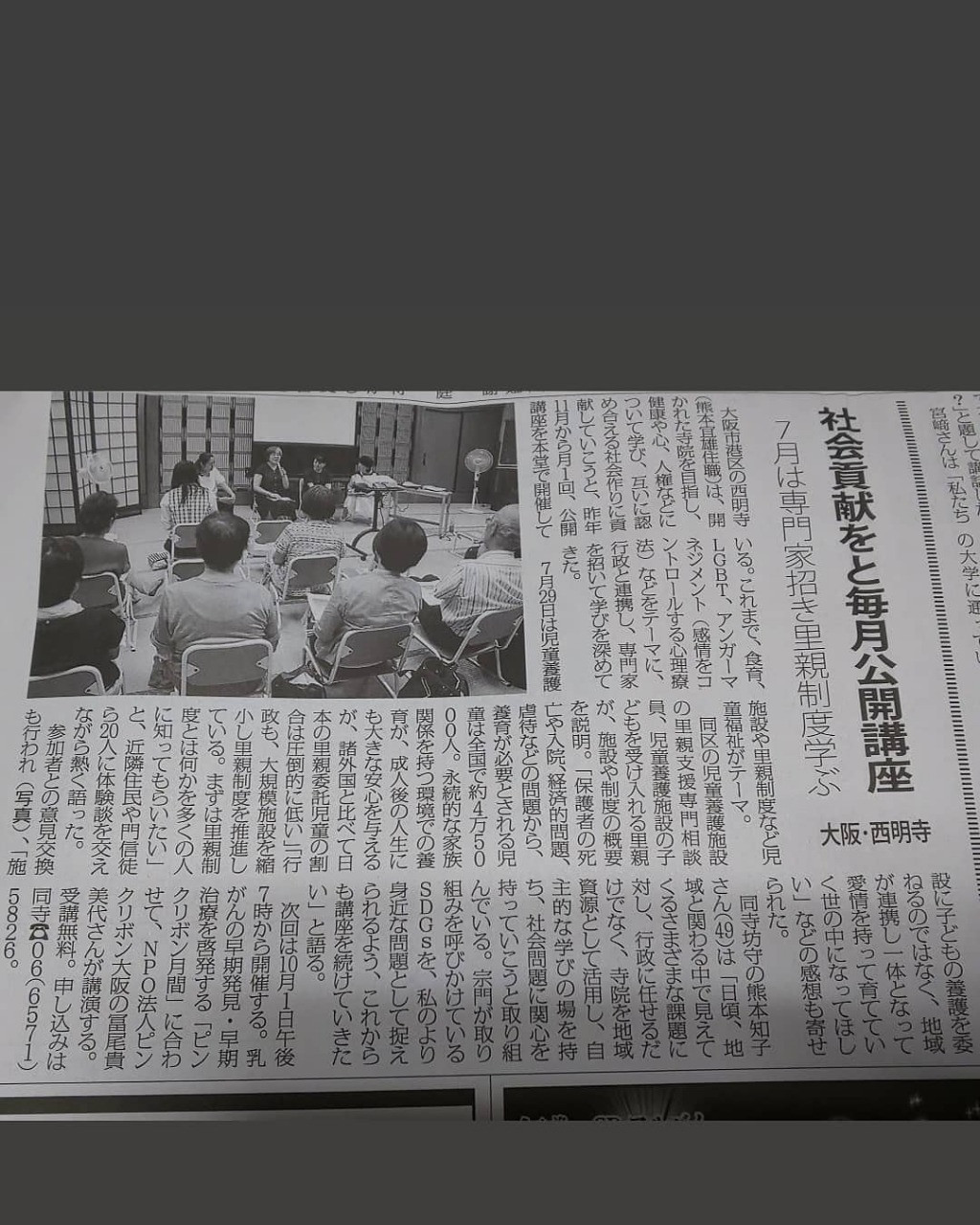 本願寺新報さんが里親セミナーを取材してくださり、9月10日号に掲載されました。