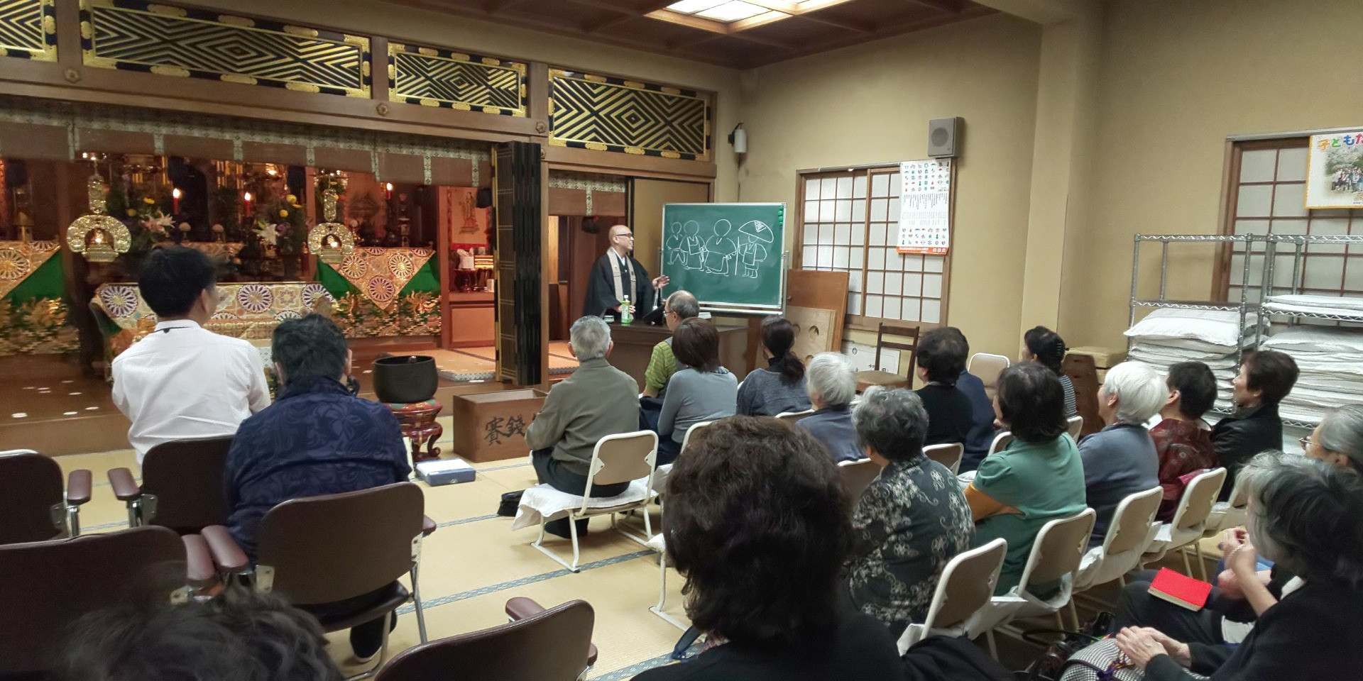 報恩講お勤めしました 2019/11/11 報恩講 ようこそお参りくださいました。 風が強く、時折雨も落ちてきましたが、たくさんの方が参詣し、多方面でご活躍の釈徹宗先生のお話に耳を傾け、時に大きく笑って真宗の御法義を味わいました。 夜の座では、質疑応答の時間を多く取っていただき、日頃の疑問に的確に、また、さまざまな角度から答えていただけました。 求める心の大切さを改めて教えていただいたようにおもいます。