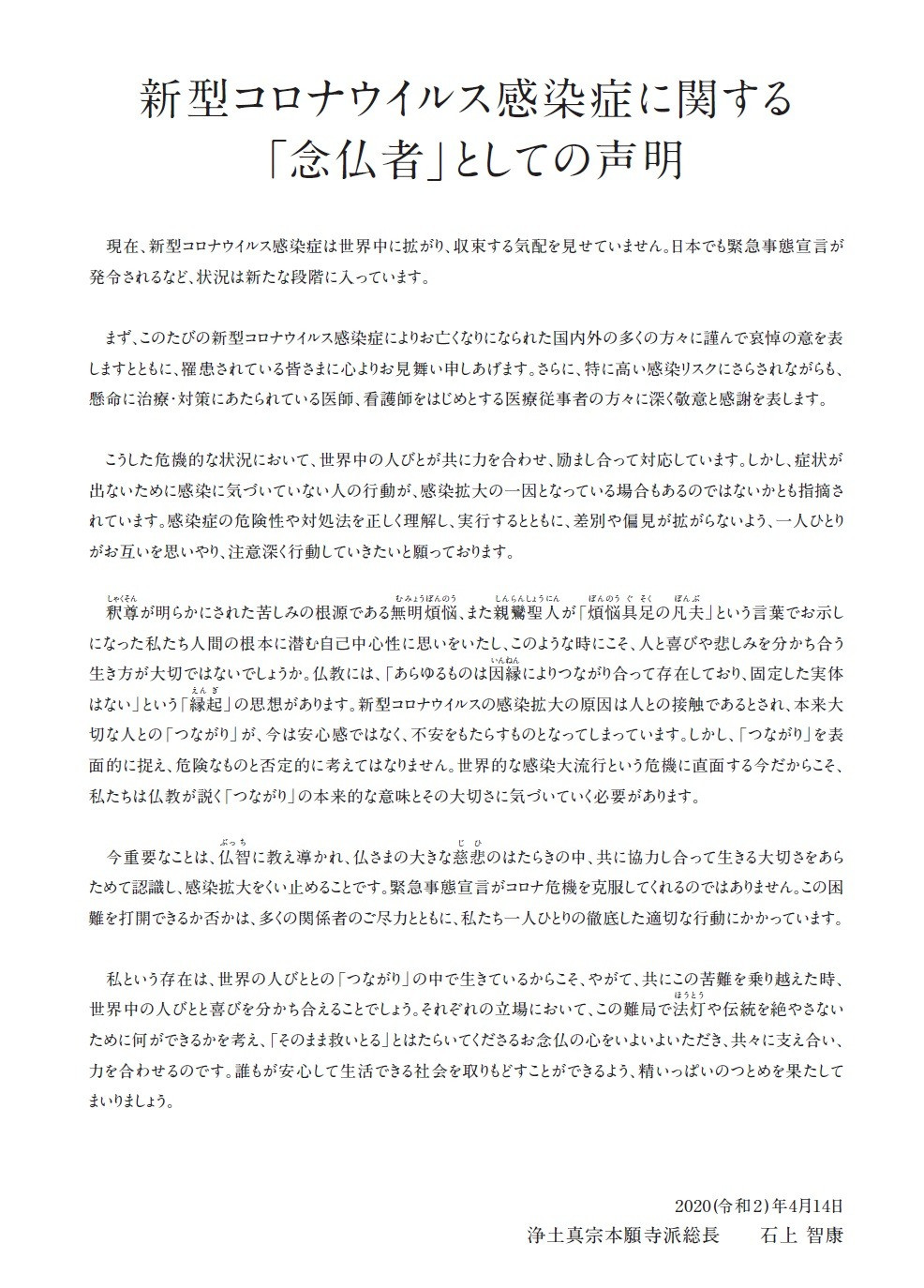声明文とポスターは本願寺ホームページからダウンロードできます。