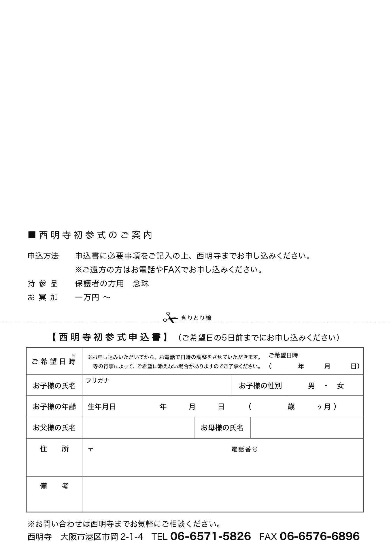 西明寺では生後1ケ月ぐらいから5歳ぐらいのお子さまを対象にご案内しております。御希望の日時をご連絡くだされば、ご相談のうえご予約させていただきます。