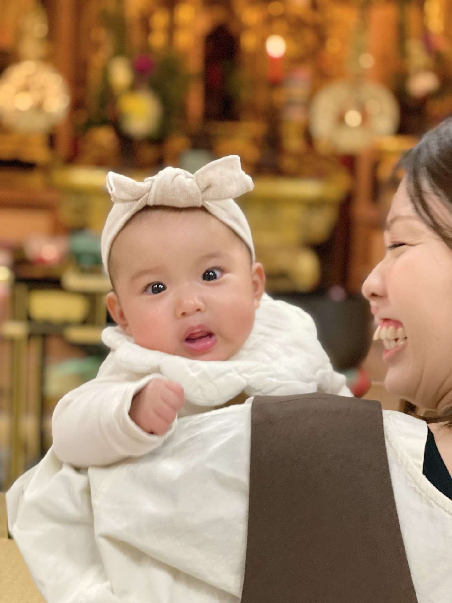 ご本尊・阿弥陀如来様の御前で、新しいいのちの誕生をよろこび、生かされて生きる縁を聞法する人生最初の大切な儀式です。