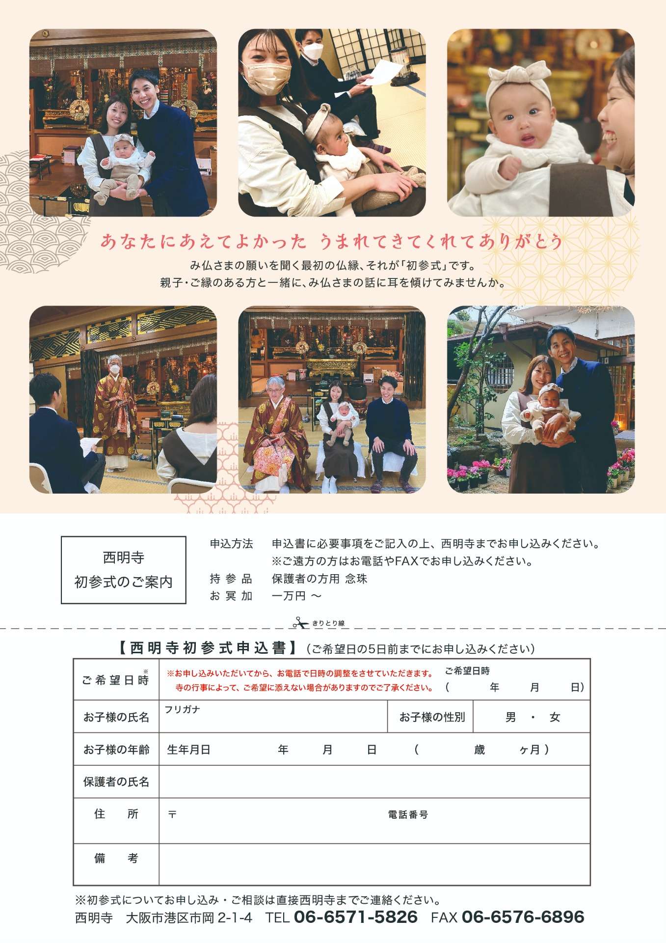子どもが誕生して初めてお寺にお参りする儀式を初参式といいます。